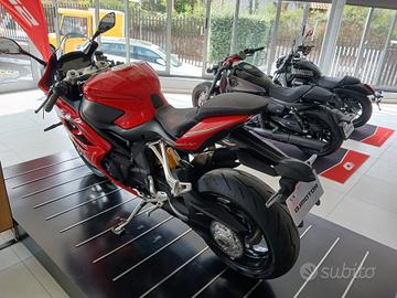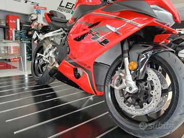 La SRK 921 RR è competitiva anche nel rapporto qualità-prezzo grazie alla sua incredibile dotazione: di serie troviamo sospensioni Marzocchi, completamente regolabili, impianto frenante della Brembo, con pompa e pinze di tipo radiale, pneumatici Pirelli e schermo TFT a colori da 5"