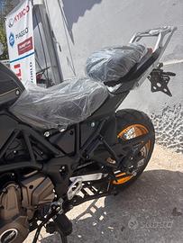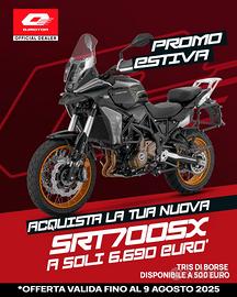 La SRT 700 SX è pronta per affrontare le sfide più estreme. Il TFT da 7" dispone delle funzioni Bluetooth/Mirroring; troviamo poi i blocchetti retroilluminati, il parabrezza regolabile e, sia le manopole sia la seduta, sono riscaldabili. Le protezioni laterali, il cavalletto centrale e, infine, completano questa ricca dotazione di serie.