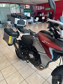 Questa moto, dal design moderno e accattivante, si presenta in una colorazione che ne esalta le linee aggressive e al tempo stesso eleganti. L'esemplare in foto è già equipaggiato con valigie laterali rigide in alluminio, pronte per le tue prossime avventure!