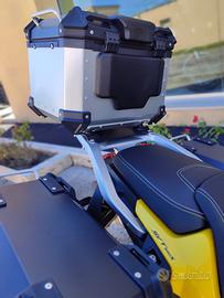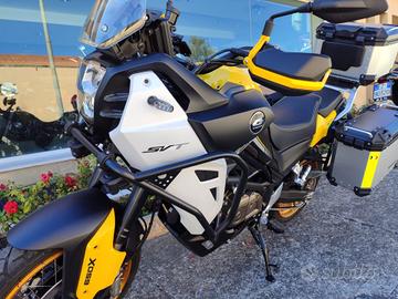 Ottima SVT650X, motore bicilindrico a V di 90 gradi come sulla Suzuki V Strom 650, seminuova, percorsi solo 1600km, Tris di valigie in alluminio, faretti supplementari multifuzione, primo taglaindo effettuato, comoda e confortevole, garanzia ufficiale QJ Motor. Moto in conto vendita.
