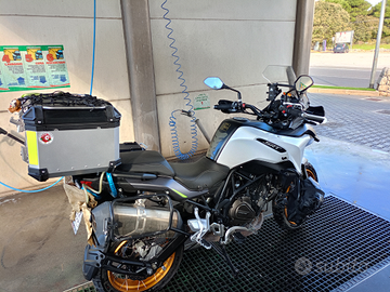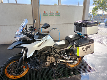 Qj motors SRT 700x 73cv manopole e sella riscaldabile sensori pressione gomme con tris di valigie in alluminio ancora in garanzia fino al 2028 per chi nn conosce il marchio e lo stesso del Benelli trk 702x solo che QJ e più accessoriata con forcella marzocchi e freni Brembo e ruote tubeless appena sostituite prezzo poco trattabile e chilometri attuali 30000km