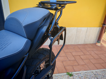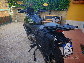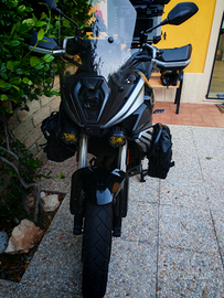 Parabrezza alto 55 cm, sella guidatore e passeggero con 3 cm di memory foam in più fatte fare da un artigiano di Roma, porta cellulare, faretti collegati sottochiave, borse laterali da 8 lt, bauletto originale e tutti gli accessori originali.