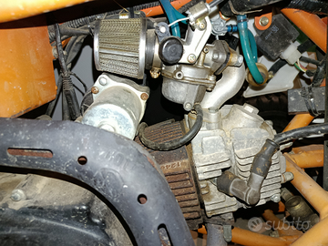 Vendo quad 125 Modifiche fatte: Filtro a cono Carburatore 14 Filtro benzina Tutti i tubi del serbatoio nuovi Sella nuova Gomme avanti nuove Batteria semi nuova Si presenta con una marcia avanti una dietro e la folle Unico difetto cambiare pompa freni posteriore Disponibile anche con stop dietro originale Prodotto eccezionale