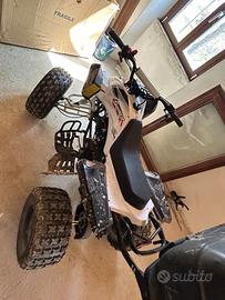Quad acquistato da Montalbini completo di telecomando di accensione a distanza, 3 marce avanti più retro, consumati al massimo 3 pieni, perfetto. Motore molto potente anche per due e regolazione dell acceleratore per i più piccoli. Freni a disco anteriori e posteriori