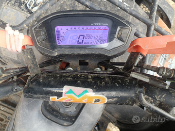 Quad allestito con stacca batteria, seggiolino per passeggero dietro, specchietti, ruote nuove, barra di luce a led,