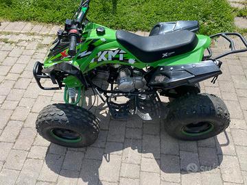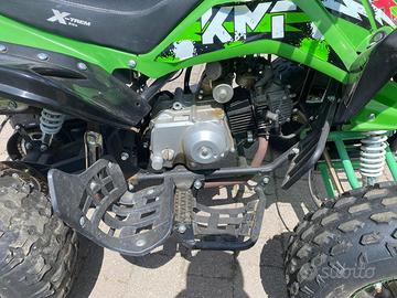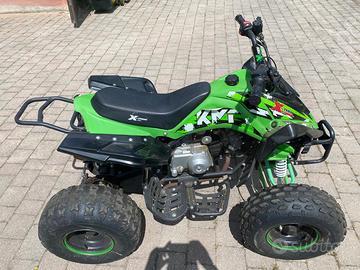 Vendo quad 4 tempi 125 T Moto • Freni: freni a doppio tamburo anteriori / freno a disco idraulico posteriore • cambio automatico con retromarcia • Sospensioni: Anteriore - doppio ammortizzatore / Posteriore - monoammortizzatore • Telaio: struttura in acciaio verniciato a polvere Chromoly • Cambio: trasmissione a catena con frizione centrifuga completamente automatica • Ruote: ruote anteriori e posteriori da 16 x 8-7 pollici dotate di pneumatici fuoristrada • Manubri: manubri con barra di rinforzo e pad • Tipo di acceleratore: acceleratore a pollice con limitatore • Caratteristiche di sicurezza: interruttore di sicurezza, cordino di sicurezza del pilota • Luci: anteriore / posteriore / freno • Carburante / Capacità: benzina senza piombo / 2 litri • Olio: 10w-40 • Altezza Seduta a terra: 69 cm • Altezza Da sedile a poggiapiedi: 46 cm • Peso lordo: 105 Kg circa • Portata massimo del pilota: 95 Kg