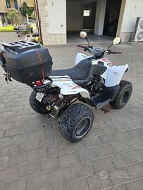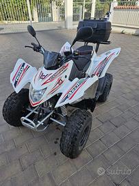 Vendo Quad Aeon Cobra 50, usato poco e quasi sempre su strada. Veicolo perfetto per un ragazzo dai 14 ai 16 anni, ma anche per un adulto. Omologato per il trasporto di due persone. Adatto per spostamenti urbani, l'ideale in percorsi di campagna. Trazione 2x4 ma, poiché molto leggero, si comporta abbastanza bene anche in terreni sterrati e con medie pendenze.