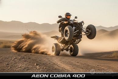 AEON COBRA 400 EFI Euro 5 - NUOVO - Pronta Consegna PREZZO LISTINO EURO 7290,00 !! IN PROMO AD EURO 5800,00* !!! ZERO SORPRESE Aeon Cobra 400 nell'ultima versione aggiornata Euro 5. Il punto di riferimento per chi cerca uno sportivo affidabile, agile e divertente. Caratteristiche Principali: Motore: Monocilindrico 4 tempi, raffreddamento a liquido. Tecnologia: Iniezione elettronica EFI per partenze perfette in ogni condizione. Sicurezza: Differenziale posteriore (maggior stabilità e manovrabilità). Comfort: Sospensioni a doppio braccio sovrapposto e ammortizzatori regolabili. RISPARMIO : il cobra 400 è il quad dalla qualità prezzo senza eguali L'ICONA DEI QUAD SPORTIVI È QUI. Cerchi il mix perfetto tra agilità racing e tecnologia moderna? L'Aeon Cobra 400 EFI Euro 5 è il quad che non scende a compromessi. * IL PREZZO DI EURO 5800,00 è INTESO INCLUSO MESSA IN STRADA , TRASPORTO MEZZO IN CASSA NELLA NOSTRA SEDE . RIMANE ESCLUSO IL COSTO DELL'IMMATRICOLAZIONE CHE è DI EURO 420,00 LISTINO EURO SOLO QUAD EURO 7390,00 + SPESE ACCESSORIE