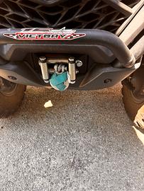 Quad usato pochissimo da mio padre anziano per andare a fare la spesa. Vendiamo per cessato utilizzo. 1900 km, mai visto sterrato. Versione Luxury, cerchi in lega, luci led,verricello elettrico, gancio traino, servosterzo, abs, parabrezza e grande baule posteriore. 400cc euro 5. Guidabile con patente B.