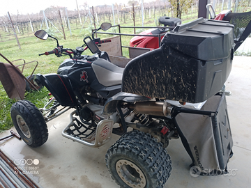 Vendo quad 350 goes con in più cassone che vedete in foto costo 250 euro e un treno di cerchi e gomme stradali più un altro treno di gomme da sterrato, scarico originale e scarico modificato già installato prezzo un po' trattabile