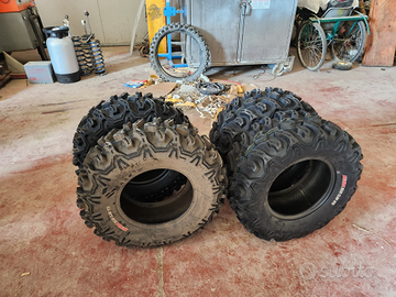 Vendo quad honda rincon in perfette condizioni e tenuto bene, NON HA DIFETTI, disponibile per qualsiasi prova nella mia azienda agricola, gancio traino omologato a libretto, insieme al quad cedo 3 treni di gomme di cui 1 treno da strada nuovo, 1 treno da sterrato estremo " kenda bear claw 8 tele" anche esse nuove, (vedasi foto), ed un ultimo treno di gomme da sterrato più usurate ma ancora buone. Il tutto con cerchi in lega (vedasi foto) + più cerchi in ferro!