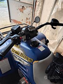 Vendo perfettamente funzionante causa vendita garage, quad Polaris 330 2x4 con batteria nuova marzo 2026(100 €). Usato sempre in strada per tragitti casa-lavoro, spesa, grazie al baule da 80lt (250€) da 3 caschi. Anno 2003, revisionato nelle parti elettriche. Poca elettronica, tutta meccanica, poca ordinaria manutenzione, guidabile con B1,B2, bollo 27 euro già pagato. Prezzo poco trattabile, no spedizione.