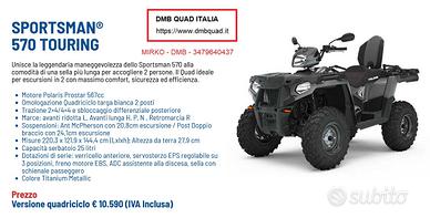 Siamo concessionari Polaris da oltre 10 anni , siamo specializzati in quad da 15 anni , per qualsiasi informazione , permuta e consegna , vi invitiamo a contattarci , anche WhatsApp, Grazie.