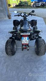 Come titolo quad Polaris predator 500e con retromarcia, appena tagliandato, sostituito disco freno posteriore e pastiglie, catena nuova, 4 gomme stradali nuove più 4 gomme e cerchi tassellate ottimo stato, entrambi i treni omologati a libretto, nessun lavoro da eseguire, frecce luci ecc tutto ok, motore subaru, ( no ktm! )completo di verricello anteriore con comando su manubrio.