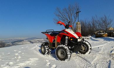 Vendo, come da titolo, quad Polaris. Anno 2008, cilindrata 330 cc. Vendo a malincuore perché non lo utilizzo più. Il quad è funzionante e pronto all'utilizzo. Sono stati fatti alcuni lavori di manutenzione, tra cui tagliandi e sostituzione del gruppo variatore di trasmissione (ricambio originale, sostituito a causa di usura). Effettuata modifica all'impianto frenante, la quale consente di frenare le ruote anteriori con la leva a mano, e le ruote posteriori con la leva a piede (in originale la frenata era unita e per frenare completamente occorreva azionare entrambe le leve). Il quad ha ovviamente segni di usura.