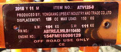 Vendo mini quad 125cc del 2018 Usato molto poco!