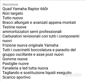 Quad Raptor 660 R Non targato