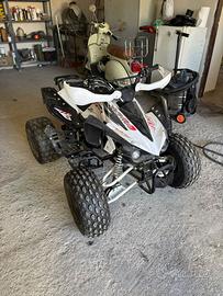 Quad usato pochissimo Seminuovo con freno idraulico a disco posteriore e paramani di serie. Ha dimensioni di poco ridotte rispetto ad un “normale quad”. MOTORE Motore 125cc, 4 tempi Cambio semi-automatico (3 marce + Retro) Frizione automatica Carburatore PZ20 Accensione elettronica Batteria 12V 6Ah Tipo carburante Benzina Verde TELAIO, FRENI, DIMENSIONI Telaio in acciaio Freno anteriori a tamburo, freno posteriore idraulico (1 disco su assale) Ruote da 8″ Capacità serbatoio 2,3 Litri Dimensione imballo 1320x770x650 (Lungh; Largh; Altezza) TRASMISSIONE Catena 420 Pignone 14T Corona 37T