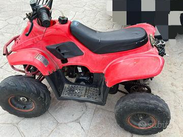 Quad 75cc Sport – Motore perfetto – Ideale per imparare." Vendo splendido Quad 75cc color rosso fiammante, perfetto per ragazzi e bambini che vogliono approcciarsi al mondo del fuoristrada. Il mezzo è stato usato con cura in campagna e il motore è un vero orologio: parte subito e non ha mai dato problemi meccanici. Sella con apertura rapida (comodissima per manutenzione). Accensione elettronica.Estetica sportiva e telaio robusto.Motore 4 tempi affidabile e dai consumi bassissimi. Note: Il mezzo presenta alcuni segni di usura dovuti al divertimento (vetro stop posteriore rotto e luci anteriori da rivedere). La batteria, se il quad resta fermo a lungo, potrebbe aver bisogno di uno spunto con i cavi, ma una volta acceso va che è una meraviglia. Freni da regolare per massima precisione. Prezzo: 500,00 leggermente trattabile.No offerte ridicole.