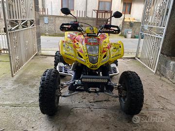 Il quad non ha nessun lavoro da fare , doppi cerchi con gomme e altri ricambi come assetto stradale , distanziali... Monta cilindro big bore 440 cc carburatore della RMZ , scarico Arrow, assale maggiorato, filtro sportivo, fari led ....