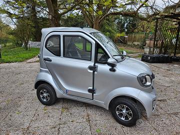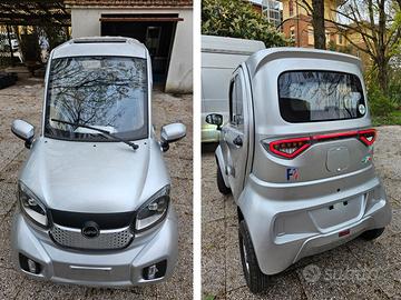 Quadriciclo Elettrico Scooter Cabinato F4 Ufo Ecobike guida senza patente. In ottimo stato, unico proprietario. Km 970 Libertà di movimento senza la necessità di patente, targa o bollo. Grazie alla sua classificazione Classe 1 con certificazione CE (Regolamento UE 745/2017), questo scooter è esente da tutte le formalità burocratiche legate ai veicoli tradizionali. Solo ritiro sul posto. Caratteristiche: Freni idraulici a disco Motore da 1500W Trazione posteriore a differenziale Batteria a litio da 60v 58ha Tensione di ricarica 220 v Tempo di ricarica in circa 6/8 ore Cerchi in lega Pneumatici di tipo tubeless Portata massima di 300 kg. Velocità: 25 km\h Retromarcia con telecamera posteriore Ammortizzatori di tipo idraulico Autonomia di 40/50 km (in base al tipo di utilizzo) Tecnologia fari a led Strumentazione LCD a led Radio con sistema mp3/fm/USB Allarme con telecomando Chiusura centralizzata Vetro elettrici