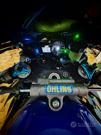 Moto del 2002 allestita con carene mod.2016, completamente rivista, parti in carbonio,cambio elettronico dinojet, centralina Power Commander 3,mono ammortizzatore wp, specchietti nuovi, scarico completo mivv ammortizzatore di sterzo honlins ,pompa freno anteriore e dischi discacciati, posteriore Brembo, frizione STM, accensione con tasto, no chiave e bloccasterzo.antisaltellamento, tagliando e paraoli forcella fatto bollo pagato, revisionata a giugno 2024