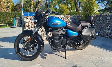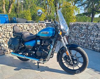 Meteor 350 stellar blu, con diversi accessori originali, più borse in cuoio. Facile e divertente adatta anche per neofiti e donne. Regalo a scelta uno dei due caschi con interfono cardo. Appena fatta revisione.