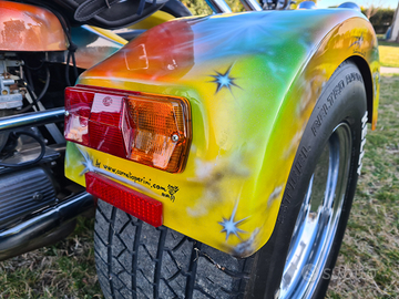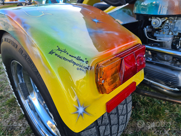 Completamente aerografato a mano libera da Cornelio Perini, famosissimo nell'ambiente custom, ha aerografato caschi per Pantani, Tomba etc.