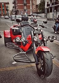 NUOVO DA IMMATRICOLARE Il trike che non passa inosservato: libertà, stile e potenza su tre ruote. Pronto a farti vivere la strada da protagonista con il nuovo Rewaco PUR3 Explorer - disponibile da subito! Colore: Rosso Black Edition Motore: 1.5 L 4 cilindri, Euro 5 [?]Potenza: 81 kW (110 CV) Cambio: Automatico a 7 marce Punch Powertrain Allestimento: Explorer - compatto, sportivo, perfetto per touring e tempo libero Caratteristiche principali Motorizzazione: 1 499 cm³ 4-cilindri Euro 5 con iniezione multipoint - 81 kW / 110 CV - 210 Nm di coppia Cambio automatico 7 marce con modalità sequenziale e sportiva Assetto: forcella anteriore con mono-ammortizzatore, sospensioni posteriori indipendenti con gas Freni: a disco su tutte le ruote con ABS Cerchi e pneumatici: di serie 200/50 ZR17 anteriore e 295/35 ZR18 posteriore Prestazioni: velocità massima 165 km/h, accelerazione 0-100 km/h in 7,3 s Dimensioni: lunghezza compatta di 3 380 mm, larghezza tra 1 720 e 1 860 mm, peso a vuoto tra 658 e 687 kg rewaco Trikes Serbatoio: 38 litri Dotazioni brevettate: portapacchi posteriore, predisposizione valigie, modalità Sport (SP) via power-shifter Non è una moto. Non è un'auto. È un Rewaco. E fa girare chiunque.