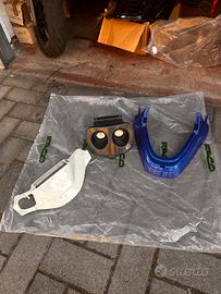 vendo ricambi booster come in foto: kit completo carene venriciate nere orignalmente bianche leggermente sverniciate 20€ cupolini bianco 5€ faro carbon look one 20€ baffo NUOVO mai montato blu metallizzato 15€ specchietto NON PIEGHEVOLE con suo adattatore 10€ NON ACQUISTARE DA QUESTO ANNUNCIO MA SCRIVERE IN PRIVATO per piu foto scrivere in privato pezzi messi bene e usate veramente poco se non 0