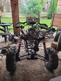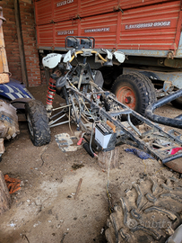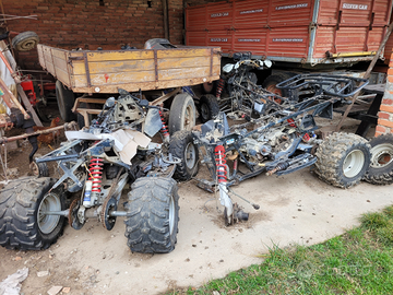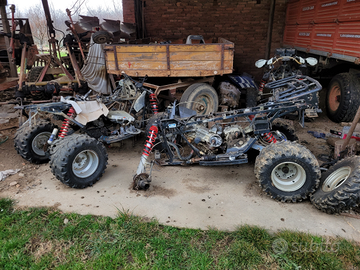 Vendo per ricambi a causa di incidente. Inizialmente erano 2 quad, ma con telai piegati mentre uno è stato acquistato buono, per motivi di tempo non ho quindi completato di assemblarlo utilizzato i vari pezzi dei 2. Dei 2 motori uno è funzionante, l'altro è aperto