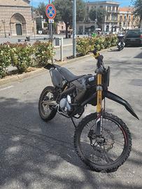 Moto sempre curata nei minimi dettagli, usata principalmente per tragitto casa-scuola. La moto ha attualmente 17000km ma presenta blocco 180 rifatto da zero 3.000 km fa, con tagliandi eseguiti sempre regolarmente ogni 3.000-2.000 km. Con il blocco 180 la moto ha prestazioni paragonabili (e spesso superiori) a quelle di un Beta o altre marche ben più blasonate, avendo un ottima ripresa. Modifiche e manutenzione recente: Kit plastiche nere completo: Parafango anteriore KTM Mascherina Polisport Fiancatine laterali Manubrio in ergal nero Scarico GPR omologato Candela nuova Pasticche freni appena cambiate Ruota libera e ingranaggio sostituiti di recente La moto è in ottimo stato generale, pronta all'uso senza bisogno di interventi. Vendo per passaggio a cilindrata superiore. Prezzo leggermente trattabile -noperditempo, solo realmente interessati.