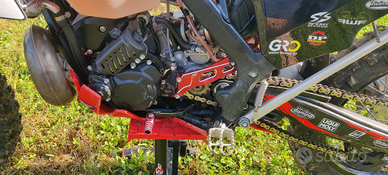 Dotato di assetto Poletti completo, mousse al posteriore con 3 uscite, paramotore composito, carter rinforzato Rekluse, para pignone, leva cambio e pompa acqua maggiorata AS3. Da poco cambiati cuscinetti del leveraggio e ingrassato tutti gli altri