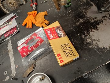 Alla moto sono stati eseguiti I seguenti lavori: Kit catena, pasticche freni, olio e filtro olio, revisione forcelle,riavvolgimento statore, candela nuova iridio