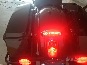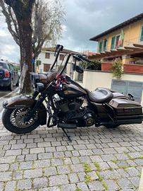 Road King Anniversary Edition 2013. Diverse modifiche in stile chicano, tra le quali scarichi Screaming Eagle, ruota anteriore 19' a libretto, tombstone posteriore e fanalino stop fatto a mano, sella singola HD, aerografia e molte altre ancora. La moto verrà consegnata come mostrata in foto. Vendo per problema di salute ma non svendo. Valuto scambio/permuta con pickup Americani. Valore permuta 21000 Euro.