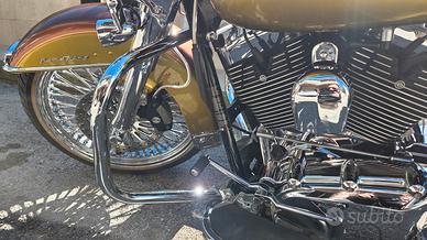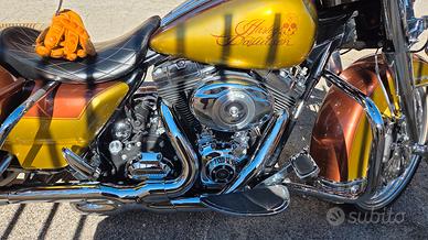 Vendo a malincuore una bellissima road king 1584 chicano style, le foto per chi ne capisce parlano da sole.Monta cerchio ant.da 21 big spoke omologato da libretto, colletori e terminali vance & Hines fishtail,distribuzione +pompa olio+canne S&S,e tanti altri accessori originali,ultimi lavori effettuati di recente con fattura dimostrano tutti i lavori che sono stati effettuati,dimostrabile anche con foto e fattura piu di 4000€.Per cui la moto è perfetta da non fare niente. Ps:permute solo con harley,moto enduro ktm 950 o 990 adventure, super tenere 750 o africa twin 750prezzo trattabile per chi è realmente interessato.
