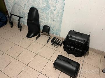 - accessori: sissi bar con cuscino schienale piccolo e grande, fari ant. supplementari, sella biposto smontabile, attacco batteria esterna e caricabatterie, borse da viaggio, portapacchi smontabile, parabrezza smontabile, porta cellulare su manubrio ape hanger 14"
