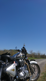 Classic 500 ancora la serie con la messa in moto a pedivella alla vecchia maniera,e anche la comodità dello starter elettrico, iniezione elettronica,doppio freno a disco sella in Memory foam,5 marce e luce a LED, perfetta nella sua colorazione rara argento imperiale. Doppio cavalletto,batteria al gel nuova. Prezzo trattabile,