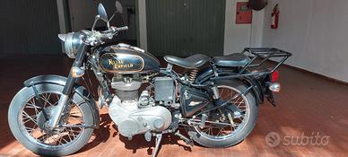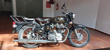 Vendo bellissima Royal Enfield nera con serigrafie oro, revisionata e perfetta in ogni particolare . Moto dallo stile inconfondibile, tenuta ovviamente sempre in garage, carburatore, avviamento elettrico e a pedale. Disponibile anche la sella unica e sacche laterali. In vendita per non utilizzo.