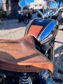 UnicaBellissima e molto curataValigie artigianali in vetro resinaSedili inglesi in cuoioSerbatoio cromato ribattutoPortaoggetti posterioreSì consegna con revisione statale effettuata e batteria nuovaUn gioiellino da collezione solo per amanti del genere