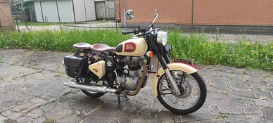 Classic 500 EFI color champagne, condizioni perfette, selle cucite a mano originali indiane, borse, gomme 80%, a corredo scarico corto e selle originali. Qualsiasi prova. Da collezione, motorizzazzione fuori produzione. Prezzo poco trattabile.