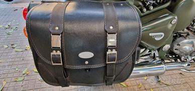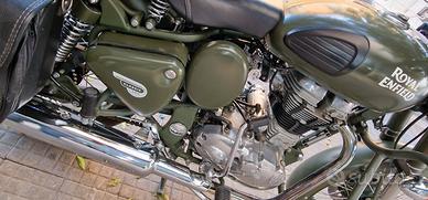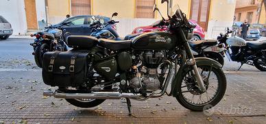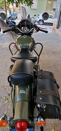 MOTO USATA ROYAL ENFIELD BULLET CLASSIC 50032.610 KMLa moto è tenuta in perfette condizioni, foto vere, raro esemplare di bullet 500.Viene venduta compresa di parabrezza corto con protezione in pelle e ferro utile per attaccargli una borsa stile barile tubolare, paramotore laterale e borsa destra in cuoio vero, creata su misura esclusiva per bullet classic 500.