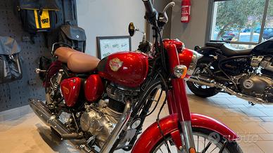 La nuova Classic 350 continua a rappresentare le tradizioni in uno stile senza tempo, ma in chiave totalmente moderna. Ispirata allo storico modello G2, la nuova e attuale Classic 350 continua a celebrare il suo design iconico, attraverso i sinuosi parafanghi e il serbatoio a goccia, il caratteristico faro e le linee del carter, oltre ai particolari colori e il distintivo suono dello scarico. Nuova versione disponibile, vieni a scoprire la promozione riservata direttamente in concessionaria. Le agevolazioni sul prezzo hanno validità fino a fine mese, vincolate dalla giacenza in magazzino. I nostri partner finanziari sono Agos Ducato, C.A. Bank, Findomestic e Compass con la quale puoi finanziare (se sei censito) anche senza busta paga. Puoi finanziare anche l'intero importo senza acconto, oppure avrai la possibilità di pagare metà della moto subito e dopo 2 anni scegliere se saldare l'altra metà, rifinanziare o restituire la moto. In alternativa puoi sfruttare un fantastico tasso zero in 24 rate oppure un finanziamento agevolato fino a 60 rate. La garanzia ufficiale Royal Enfield è di 3 anni e hai incluso nel prezzo anche tre anni di assistenza stradale. Inoltre hai anche la possibilità di assicurare il tuo mezzo tramite la nostra compagnia convenzionata, ad oggi risulta la più conveniente ed economica con la possibilità di montare gratuitamente il localizzatore satellitare che ti permette di risparmiare il 40 % del costo. Siamo concessionari ufficiali Royal Enfield, in sede troverai, oltre a una vasta esposizione, l'officina autorizzata, garantita dagli attestati ufficiali dei nostri esperti tecnici, un magazzino ricambi ben assortito e una vasta scelta di accessori. Ti aspettiamo a Palermo, in Viale Regione Siciliana, 241 (angolo Via Giuseppe Pagano, zona Corso Calatafimi). Segui i nostri canali social Facebook e Instagram e vieni a trovarci per un preventivo gratuito e personalizzato.