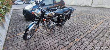 Portapacchi nero, paramotore cromato originale Royal Enfield, lucchetto per casco.