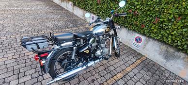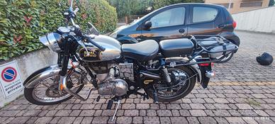 Portapacchi nero, paramotore cromato originale Royal Enfield, lucchetto per casco.