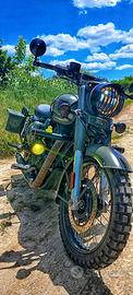 Se cerchi una moto comune, questa non fa per te. VENDO a malincuore la mia Royal Enfield Classic 350 serie Signals (Verde Militare), un esemplare unico, personalizzato con cura per accentuare la sua anima storica e il suo stile militare. La moto è stata acquistata nuova a gennaio 2023, si presenta in condizioni impeccabili ed è sempre stata tenuta con cura maniacale e tagliandata regolarmente da officina autorizzata. Attualmente la moto ha percorso 16000 km. Questa Classic è stata trasformata in una vera "scout" militare grazie a una dotazione di accessori quali; - Gommata recentemente con pneumatici tassellati (nuovi) per un’estetica aggressiva e una tenuta superiore su ogni terreno. - Faretti fendinebbia supplementari per una visibilità totale e un look adventure. - Parabrezza alto in stile retrò (perfetto per i lunghi viaggi). - Paramotore robusto già installato con bauletti in stile militare. Incluso nel prezzo regalo insieme alla moto una serie di componenti che ti permettono di cambiare il look del mezzo in pochi minuti: Attualmente monta sella e sellino posteriore nero; includo anche la sella e il sedile posteriore originali marroni (completi di schienale). Cedo anche i copertoni originali (con 13.000 km percorsi), ancora in buono stato. Un secondo paramotore originale Royal Enfield di scorta. Perché sceglierla? Non è la solita Classic che esce dal concessionario. È una moto con una personalità dirompente, già gommata e accessoriata di tutto punto. Non devi aggiungere nulla, solo girare la chiave e partire. Disponibile per qualsiasi visione. No perditempo o offerte ridicole, la moto è un pezzo unico per veri intenditori.