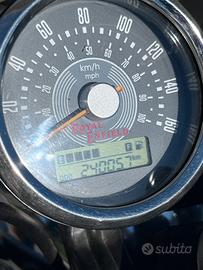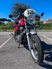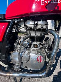 Royal Enfield Continental GT 535cc, prima serie monocilindrica: -Immatricolazione 2014 -21kW / 29CV -Euro3 -telaio Harris Performance -sospensioni Paoli -pinze freni Brembo -avviamento elettrico ed a pedale (kickstarter) -Pneumatici Pirelli Sport Demon 60/70% -km 24000 -Omologata biposto (non tutti gli anni Dino al 2018 lo sono) -Unico proprietario Personalizzata con: -scarico a cono "taper style" inglese -copri catena alluminio e battitacco alluminio GT -filtro aria Venturi -tabella porta numero -specchietti endbar. A maggio 2025 sostituzione kit trasmissione (catena, corona, pignone) revisione fino al 07/2026. Batteria sostituita a novembre 2025 La moto è perfettamente funzionante, presenta bozzo su serbatoio e qualche graffio. La sella in foto ha il codino “squadrato” rimovibile per farla diventare biposto. Nel prezzo consegno accessori tra cui seconda sella monoposto originale codino rosso fisso; scarico originale, specchietti originali + altri specchietti enbar, filtro aria originale, tappo copri punterie con scritta EFI535 originale, prolunga parafango nero originale, copri catena plastica e altri accessori originali. Manuali “Uso e manutenzione” IT/UK, più catalogo ricambi Hitchcok Motorcycle Perfetta per: chi ama il genere modern Classic, per chi ama il marchio Royal Enfield (più antico e longevo marchio motociclistico), a chi ama il fascino della MONOcilindrica, adatto a chi vuole una caferacer english style, o desidera un ottima base per farla.. ottima per chi NON ama elevate prestazioni, e anche a neopatentati. No concessionari, no permuta, prezzo trattabile.