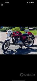 Personalizzata con scarico a cono, copri catena alluminio e battitacco gt, filtro aria Venturi, tabella porta numero, e specchietti endbar.