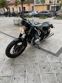 Royal Enfield continental Gt 650 del 2021, colorazione British Racing Green, monta diversi accessori come Specchietti, frecce led anteriori e posteriori, porta targa rialzato, stop a led, manopole in cuoio, mini parabrezza originale RE, paramotore originale RE, scarico Leovince, sella biposto, pedane passeggero. Disponibili anche tutti i pezzi originali.