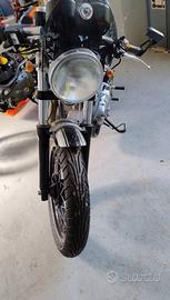 Royal Enfield modello Continental GT, cilindrata 535, anno 2019. Moto completamente customizzata come si vede dalle foto, con tantissimi accessori (tra i quali scarico artigianale ed altre varie parti realizzate a mano), tantissime ore di lavoro per renderla così. Solo 5802 km all'attivo, pronta all'uso. Solo un piccolo segno sul serbatoio dove è saltata una piccola parte di lucido (vedi foto) Gomme Dunlop Aerox all'80%. Massima serietà, disponibile per qualsiasi prova.